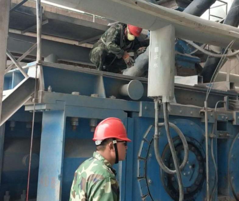 5月26日,在中控室操作員與成品裝置維修人員默契配合下,烘干破鎖風下料器檢修和內部積料清理、側墻填補澆筑料工作完成,且烘干破鎖風下料器安裝到位。