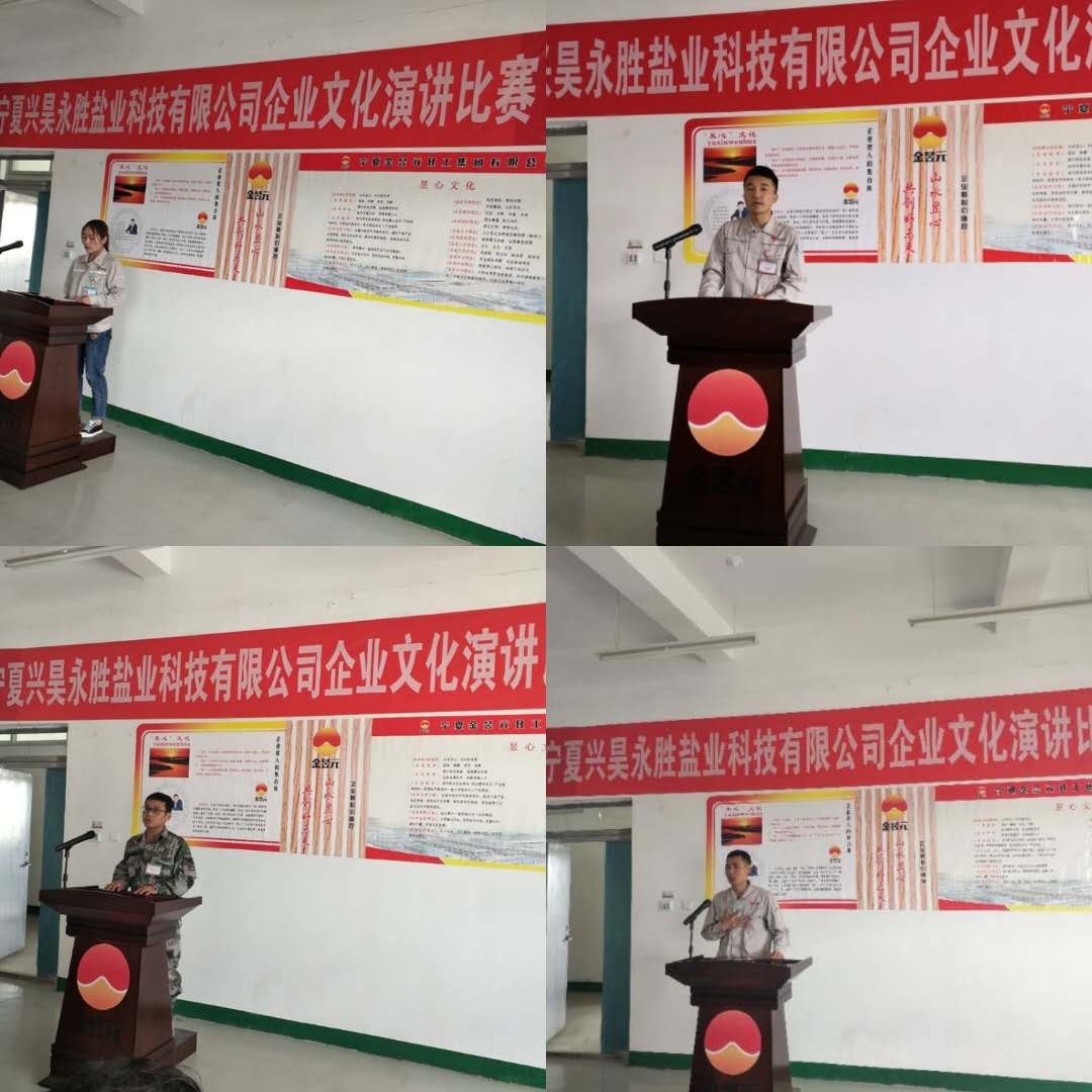 2019年5月30日,寧夏興昊永勝鹽業科技有限公司舉辦“提升職業化素養”主題演講比賽。鹽業公司總經理尚繼榮、副經理莊濤、綜合科科長張偉、安環生產科科長岳尚華及50余名員工代表參加。同時,還特邀片區副總經理馬建東、黨支部副書記王志杰出席活動。