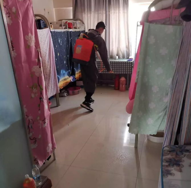 在東門,他們面對來往的人員,檢測、消毒、登記是他們的責任,也是對“疫情”防控工作“安全”的擔當。