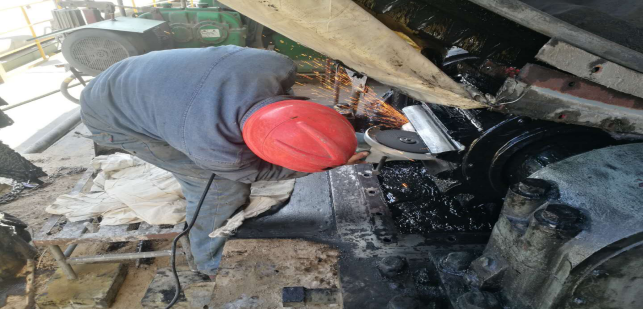 (8)回轉窯輪帶擋圈及墊板補焊加固,檢查大齒圈齒面磨損并對齒面打磨修復(未完成);