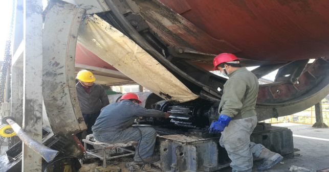 (6)烘干破減速機齒輪及軸承檢查,更換油封,聯軸器找正。破碎機內部襯板檢查并緊固螺栓,破碎機內雜物清理(未完成);