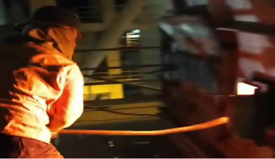 在清理結皮現場,面對預熱器本身設備的炙烤外,還有夏季本身炎熱,而他們在每一處作業點,都是那樣“激戰正酣”,他們輪流揮舞著大錘敲打著鋼釬,熟練、小心的用著“水炮”,一遍又一遍,敲碎了“結皮”,疏通了管道,每一點都是力氣活,耗時耗力。有時候,往往一錘下去鋼釬卻絲毫不動,但我沒從他們臉上看到灰心的表情。近12個小時的工作量,但從井然有序的場面我仍然可以看出他們有分工也有協作,同時銘記安全第一。
