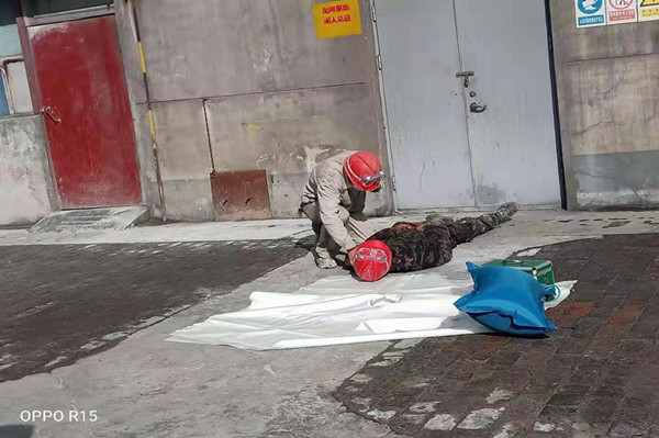 金昱元資源再生公司“心肺復蘇進企業精準健康工程”我們在行動!為提高企業員工急救技能和培養健康素養,由安環科,總調度,分管水泥系統調度,裝置進行事故演練〔心肺復蘇——觸電事故〕用實踐與理論相結合的方式對員工進行普及,讓員工掌握,遇到緊急情況時的處置能力,能夠為搶救生命爭取時間!實施科學的救助方法。