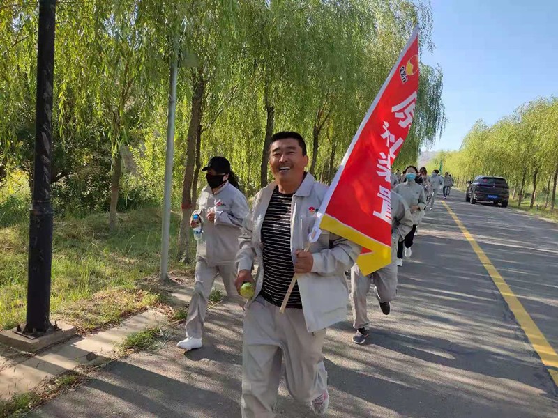 根據公司安全及疫情防控工作要求,讓參賽18組隊員以事先抽簽排好的順序分批次,間隔10鐘為規則,從大禹文化園為起點直至集團公司籃球場路途長達12.6公里的徒步越野。