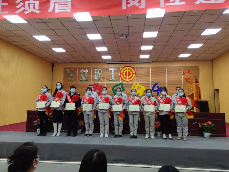 最后,女工主任宣讀受表彰的先進單位及先進個人,其中資源再生公司電石系統中控操作崗位榮獲“巾幗文明示范崗”稱號,生料、電石一裝置等四位女職工榮獲“三八紅旗手”、“優秀女職工”稱號。工會主席等人對受表彰人員頒發榮譽證書及禮品。
