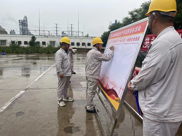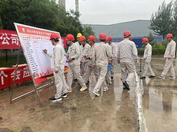 總經理尚繼榮同志為本次活動致辭,并對安全生產管理工作做出要求:一是加強“安全生產月”活動主題認識。要堅持“以人為本、安全發展”的理念和“安全第一、預防為主、綜合治理”的方針,自覺堅守“安全紅線”,恪盡職守、警鐘長鳴,始終保持危機感、緊迫感,做到居安思危、未雨綢繆、防患于未然,堅決杜絕各類事故發生。 二是持續推進公司安全生產管理工作。要充分利用“安全生產月”活動這一契機,緊緊圍繞“人人講安全,個個會應急--暢通生命通道”活動主題,加強安全生產工作,做好活動宣傳,以防范各類安全生產事故為目的,通過開展系列宣教活動,不斷增強員工安全意識和操作技能,進一步營造“人人要安全、人人管安全”的工作氛圍,以高度的責任心,切實做好、抓好安全生產工作。三是突出重點,狠抓落實,認真做好安全生產工作。各單位要以安全生產標準化為抓手,嚴格執行風險分級管控和隱患排查治理雙體系工作,深入開展重大事故隱患專項排查整治行動和安全生產治本攻堅三年行動計劃,排查整治重大事故隱患,持續強化隱患排查治理,鞏固提升安全生產標準化管理體系,扎實開展安全培訓教育,提高從業人員安全素質能力。四是嚴格“兩票三制”管理,持續開展反三違活動,確保各類作業安全有序進行。要求從事任何作業必須嚴格執行“兩票三制”管理要求,按照工作票和作業證簽發、審批管理要求逐級審核簽發、許可,各級管理人員、作業人員要把作業現場安全管理作為工作重點,嚴格作業許可、風險識別、措施落實、現場監控、完工確認等程序和規范,堅持辨識危害、規范行為、消除隱患和四不放過原則,嚴抓檢維修作業工作危害分析、安全技術交底、檢維修行為等各個環節的安全管理,有效杜絕違章作業和違章指揮,規范行為,消除隱患,確保各類作業安全有序進行,杜絕各類事故發生。五是強化關鍵裝置、重點部位、危險場所安全管理,扎實開展安全專項活動。要高度重視關鍵裝置、重點部位、脫硫、酸堿罐區各項管控措施,各級管理人員、各專業技術人員要認真檢查確認。不定期對棧橋、夾層等冷僻場所進行巡檢,發現生產安全隱患要及時記錄,并安排處理。檢維修作業必須嚴格落實安全措施,確保關鍵裝置、重點部位、脫硫、酸堿罐區設備設施、安全附件、消防系統、報警裝置、儀表儀器、監控系統等完好有效。