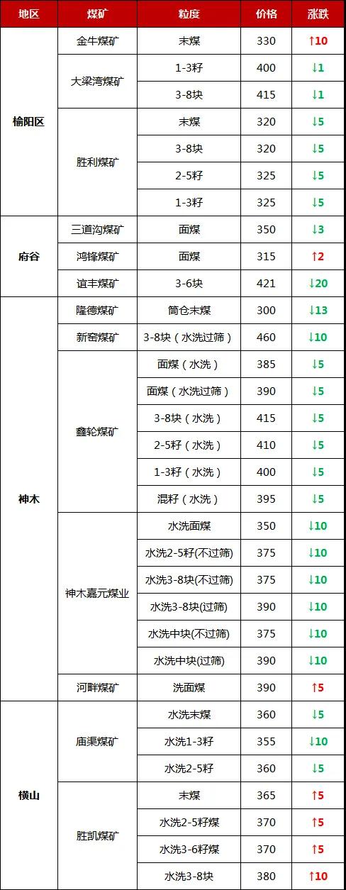 上周末至今,榆林地區煤價整體平穩,個別煤礦小幅調整煤價5-10元/噸。據榆林煤炭交易中心了解,近期下游需求依舊疲軟,汽運方面整體拉煤車輛較少,多數煤礦以銷定產,挺價意愿強烈,個別煤礦庫存較多,小幅下調煤價,加速處理庫存。